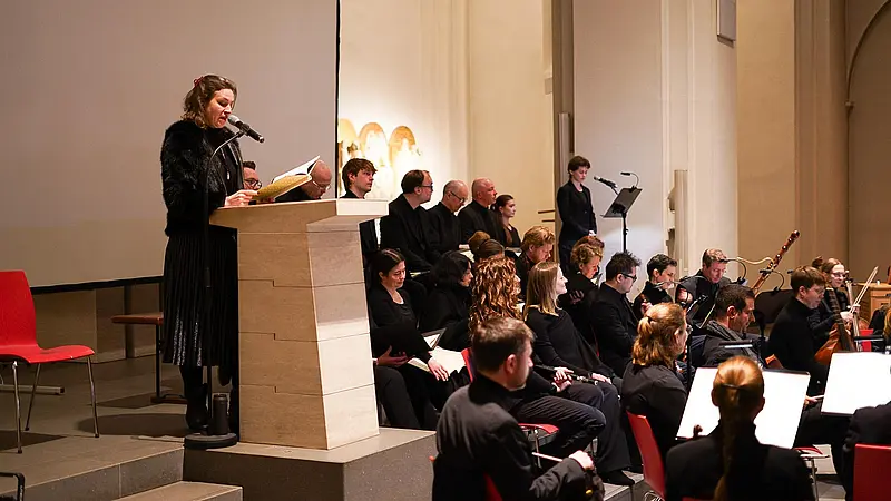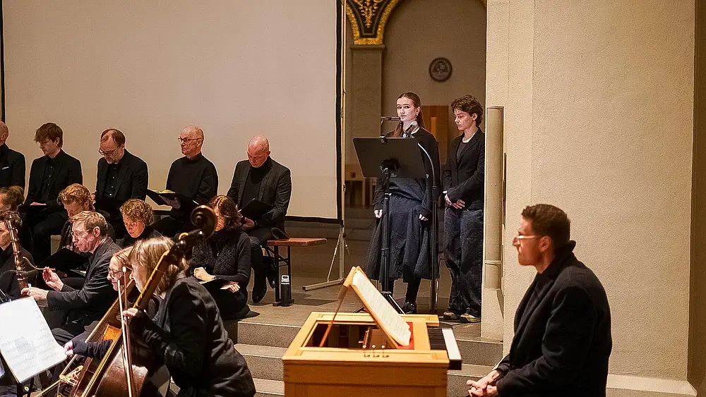 Am 14. März 2026 erlebte das Publikum im Mariendom ein gelungenes Zusammenspiel der Darbietungen professioneller Kunstschaffenden und Schülergruppen verschiedener Jahrgänge aus katholischen Schulen. In Kooperation mit der Dommusik Hamburg (Leitung: Christian Weiherer) und dem Kulturforum21 haben Schülerinnen und Schüler intensiv gearbeitet – in Videos, performativ, als Sprecherinnen.