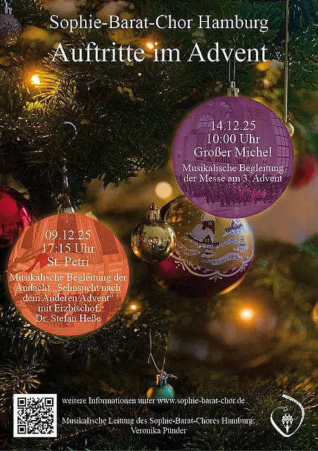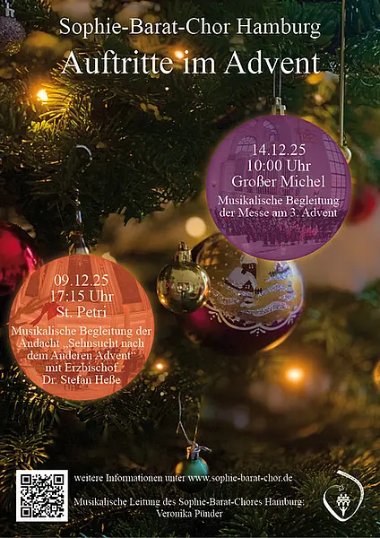 - Ein jährlicher Höhepunkt: Wir laden Sie alle herzlich ein, gemeinsam mit der Schulgemeinde am dritten Adventssonntag, 14.12., um 10.00 Uhr im schon glitzernden Großen Michel einen festlichen Gottesdienst zu feiern, mit musikalischer Gestaltung des Sophie-Barat-Chors.
