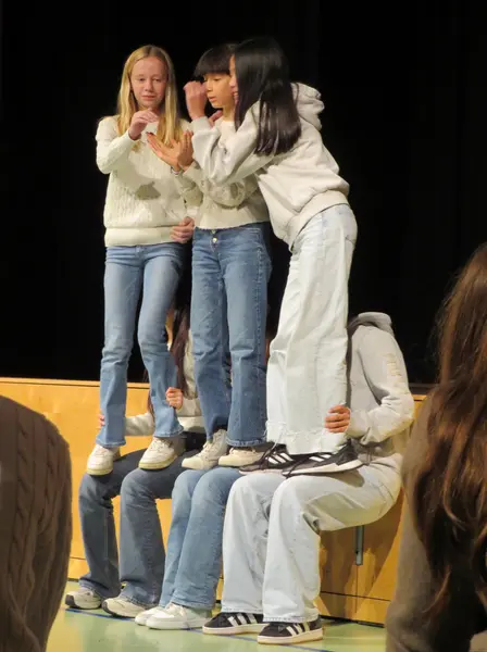 Grundlage für die inhaltliche Arbeit bildete das Stück „K(NO)W BLACK HEROES“ von Mable Preach. Jede der 7. Klassen entwickelte einen eigenen Zugang zu den Themen Heldentaten, Ignoranz, Rassismus, Diskriminierung und Ausgrenzung. In intensiven Proben entstanden beeindruckende Performances, die am Ende der Theaterwoche auf der Bühne der Schule präsentiert wurden. Alle Gruppen haben mit großem Engagement, Mut und Kreativität gearbeitet und die Inhalte auf berührende Weise künstlerisch umgesetzt.